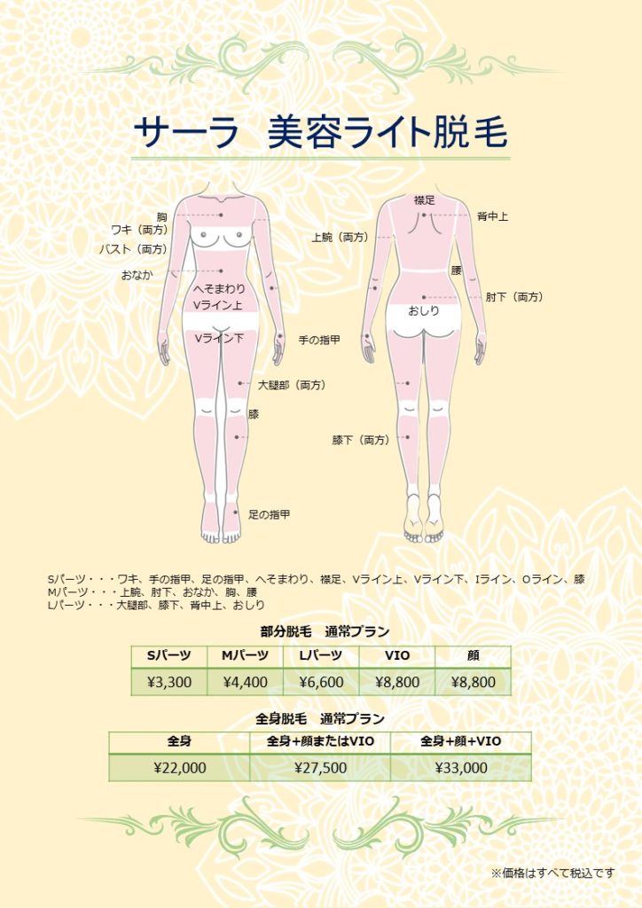 素肌やデリケートゾーンのムダ毛のお悩みなら、サーラの脱毛をおすすめします。痛みを感じにくい光脱毛技術で、その効果をご実感ください。